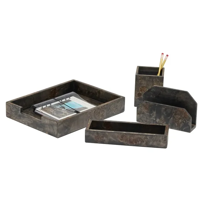 Chandler Ash Gray Mappa Burl Desk Accessory Set
