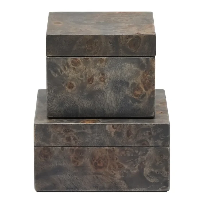 Chandler Ash Gray Mappa Burl Square Boxes Set of 2
