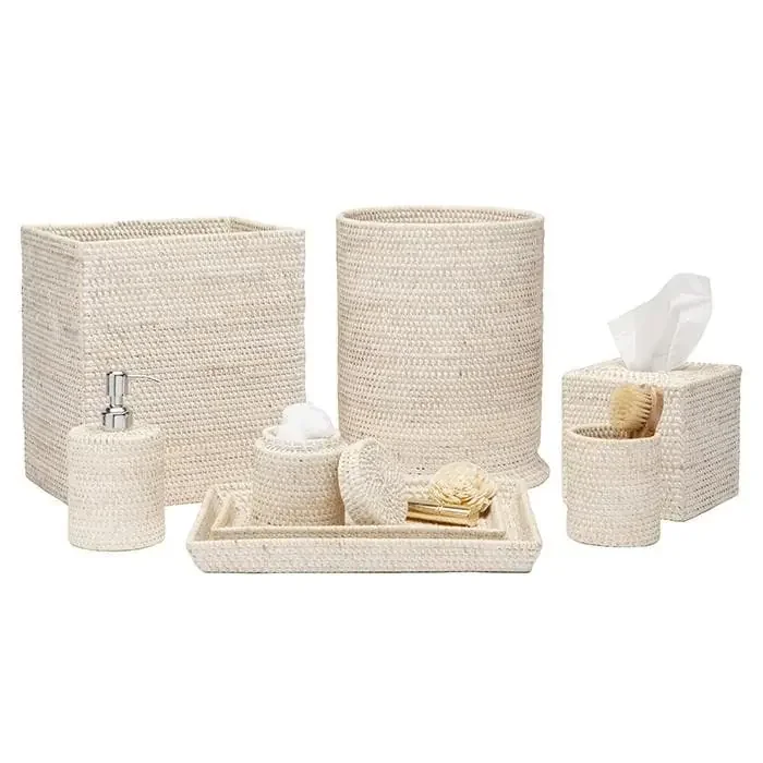 Dalton White Washed Rattan Bathroom Accessories