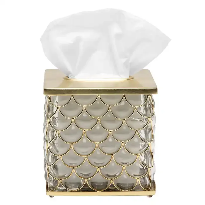Gila Brushed Gold Glass/Brass Square Tissue Box