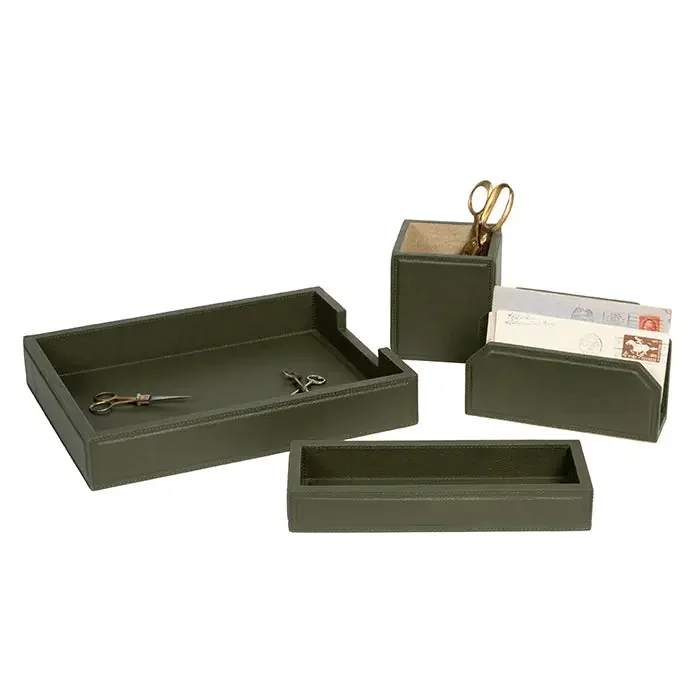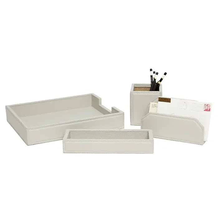 Asby Light Gray Full-Grain Leather Office Accessory Set/4