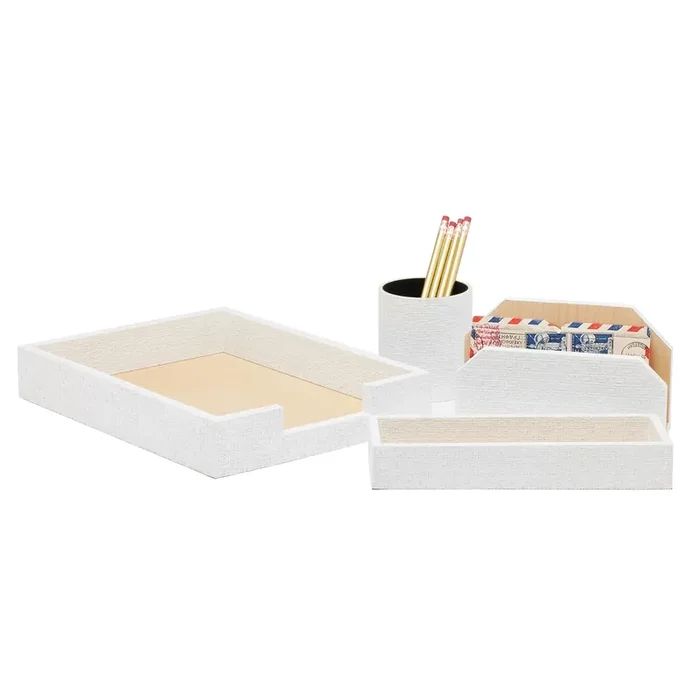 Rosewell Realistic Faux Rattan Letter Tray Set (Shiny White)