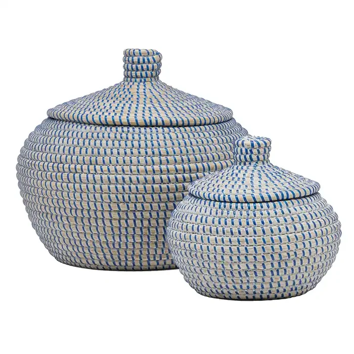 Roslyn Seagrass Round Baskets Set/2 (Whitewashed/Blue)