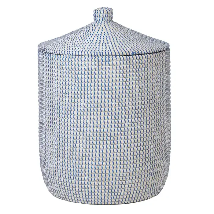 Roslyn Seagrass Tall Basket (Whitewashed/Navy)