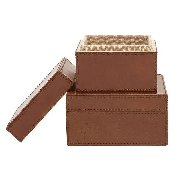 Stirling Tobacco Full-Grain Leather Canister Set/2