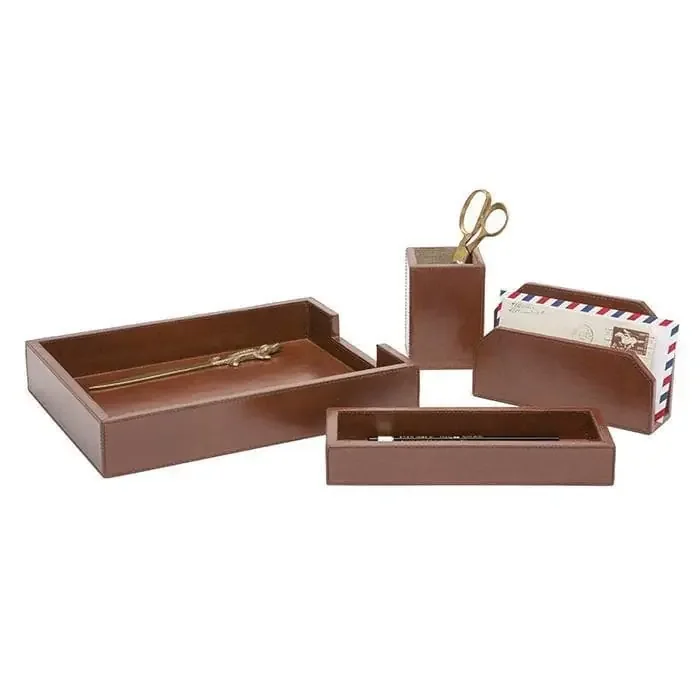 Stirling Tobacco Full-Grain Leather Office Accessory Set/4
