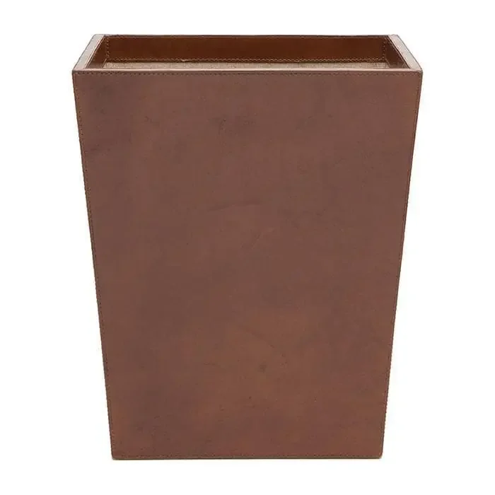 Stirling Tobacco Full-Grain Leather Rectangle Wastebasket