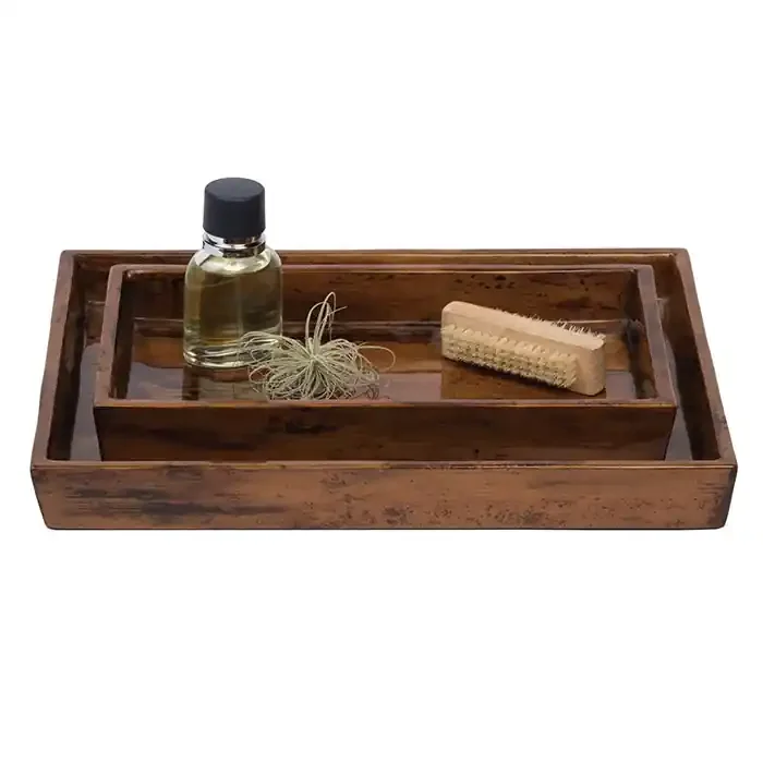 Varadero Dark Stain Banana Leaf Tray Set/2