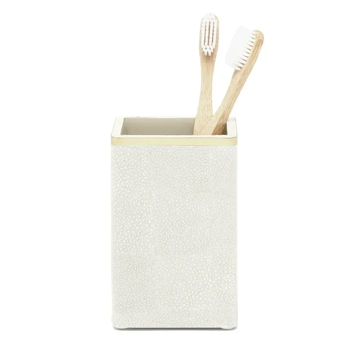 Bradford Faux Shagreen Brush Holder (Blanc/Gold)