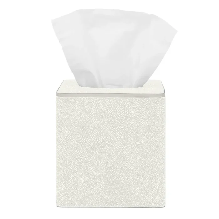 Bradford Faux Shagreen Tissue Box (Blanc/Silver)