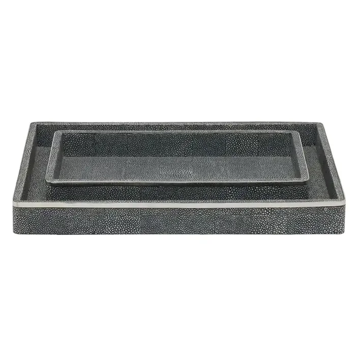 Bradford Faux Shagreen Tray Set/2 (Cool Gray/Silver)