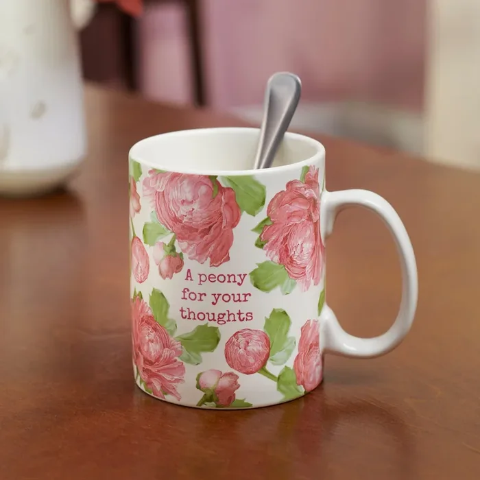 A Peony For Your Thoughts Pink Peonies Mug Flower Stoneware Coffee Tea Cup 20 oz