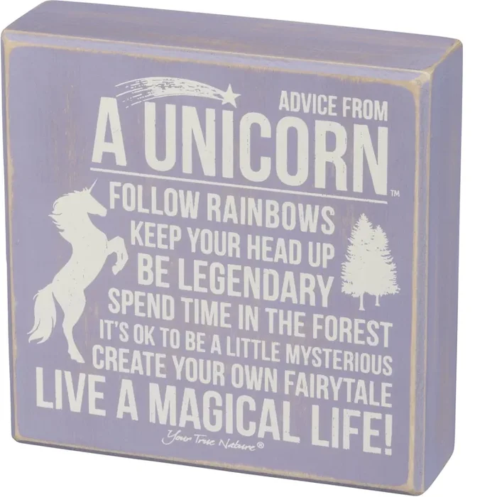 Advice From Unicorn Wooden Box Sign Purple with White Lettering 6″ x 6″
