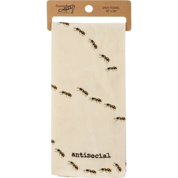 Antisocial Ant Pun Dish Cloth Towel Cotten Linen Novelty Tea Towel Embroidered Text 18″ x 28″
