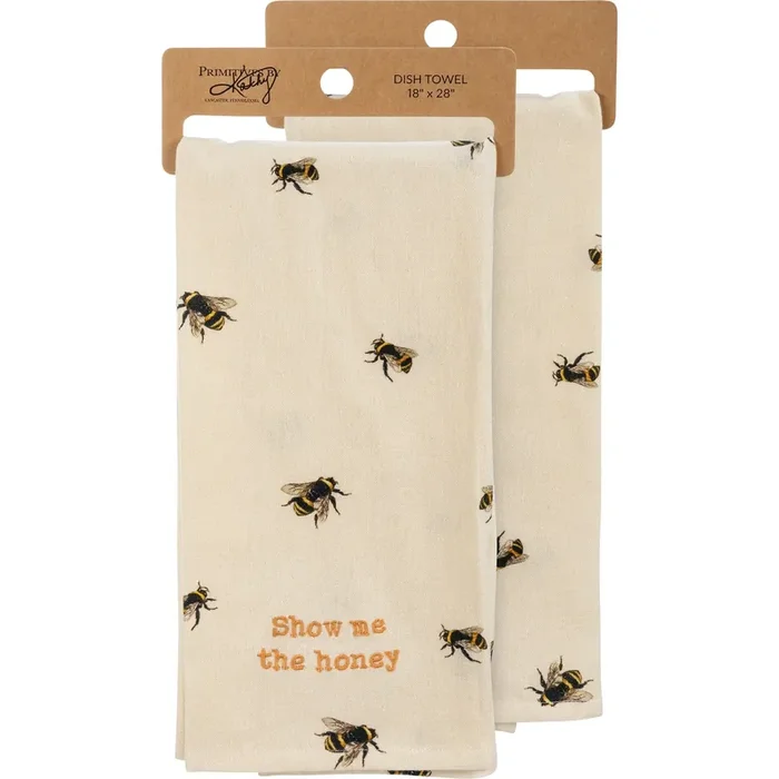 Show Me The Honey Honeybee Dish Cloth Towel Cotten Linen Cotton and Linen Embroidered Text 18″ x 28″