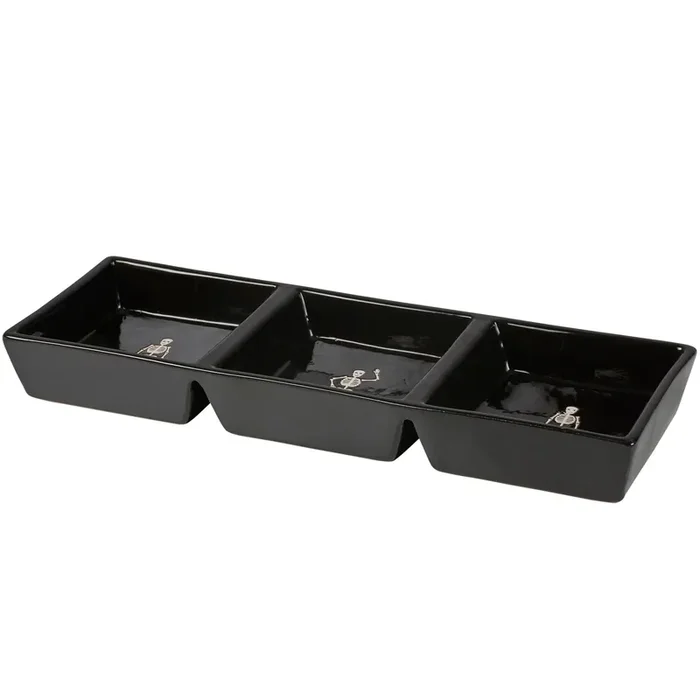 Skeletons Tidbit Tray in Glossy Black Halloween Themed Stoneware Serving Tray 13″ x 4.75″