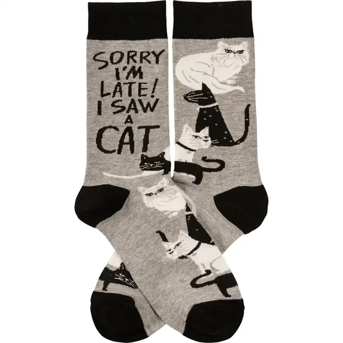 Sorry I‘m Late I Saw A Cat Woven Socks Black & White Cats Designs Novelty Socks