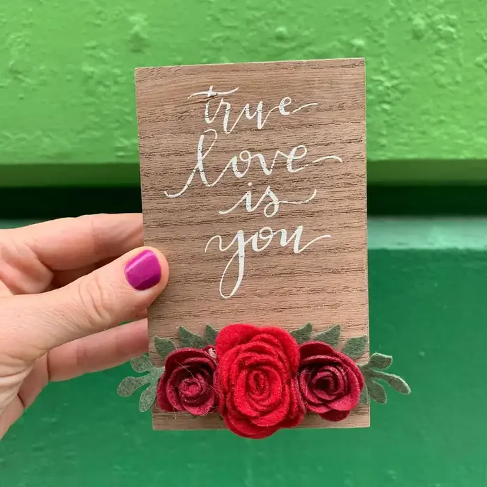True Love Is You Inspo Block Sign Felt Floral Accents 3″ x 5″