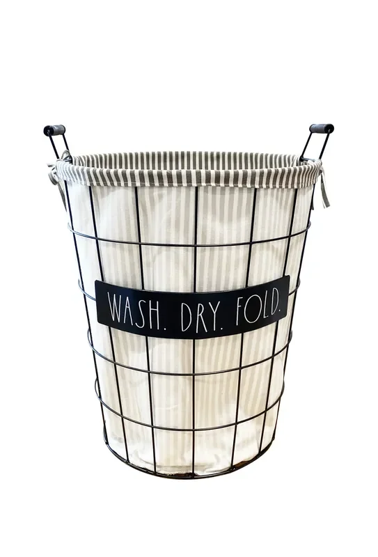 Black Round Rae Dunn Laundry Basket “Wash, Dry and Fold”