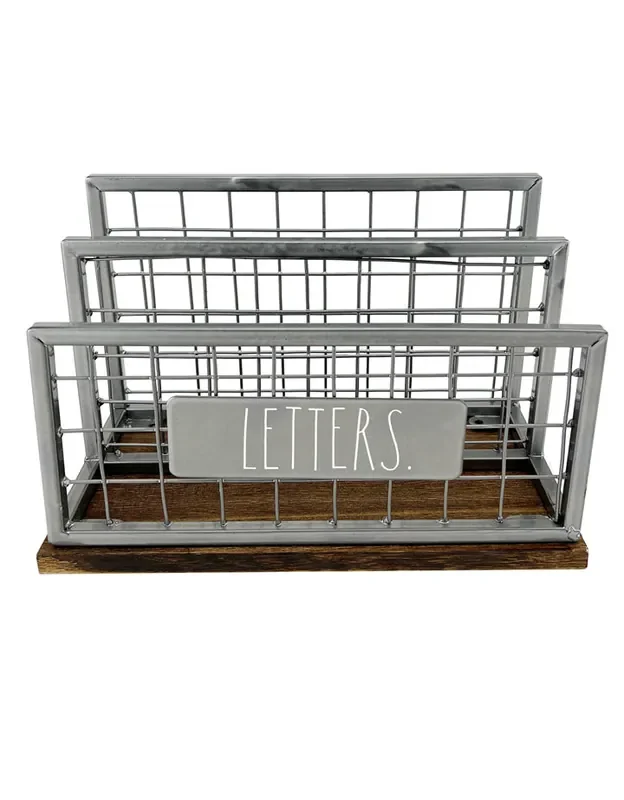 “Letters” Grey Wooden Base Wire Rae Dunn Letter Holder