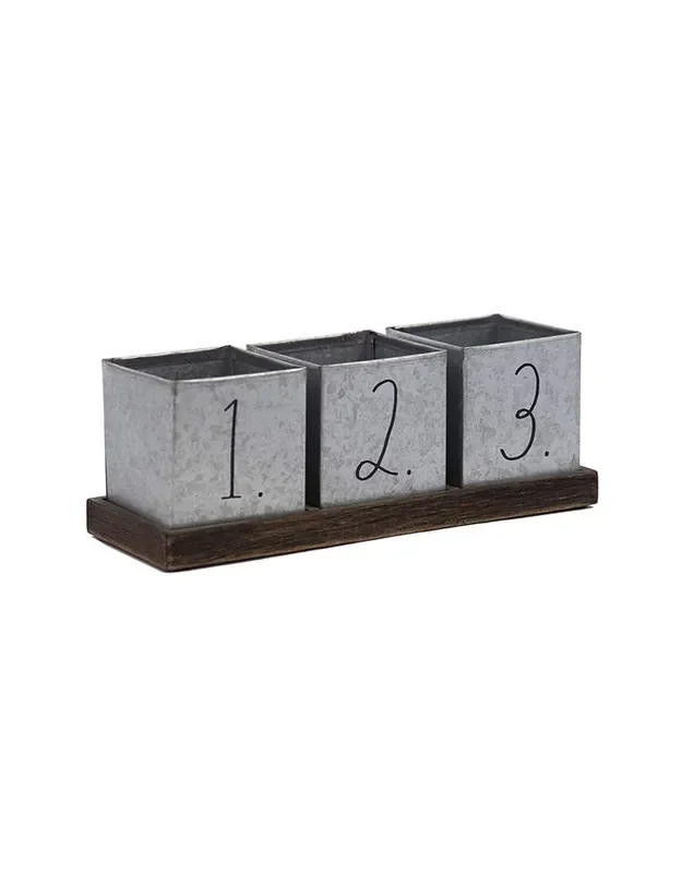 Rae Dunn “1, 2, 3” Wood and Metal 3 Sections Desk Organizer