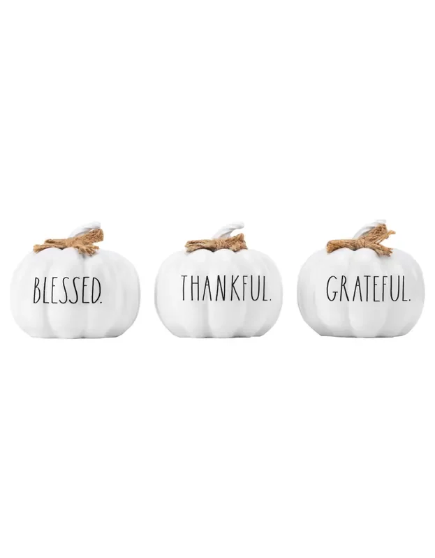Rae Dunn “Blessed” Set of 3 White Decorative Pumpkins