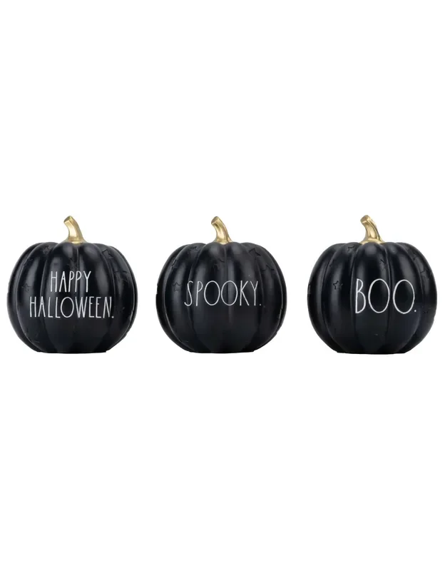 Rae Dunn “Happy Halloween” Set of 3 Black and White Pumpkins