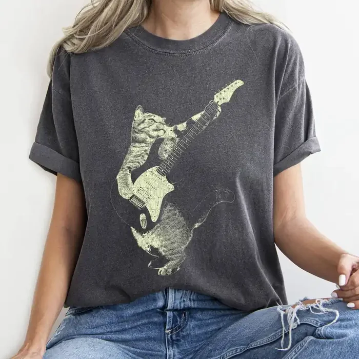Vintage Cat Playing Guitar T-shirt