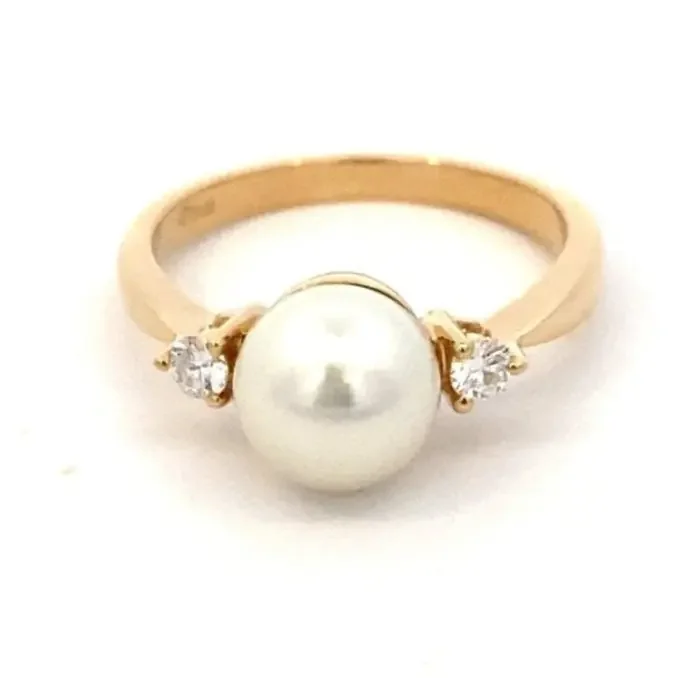 Ring- 8mm cultured pearl with side diamonds 14kt yellow gold-rego