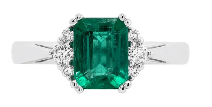 Earrings set with 2 round emeralds & diamond halos14kt white gold-rego