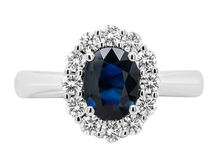 Pendant- oval sapphire & diamond drop 14kt white gold
