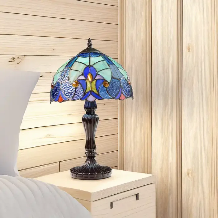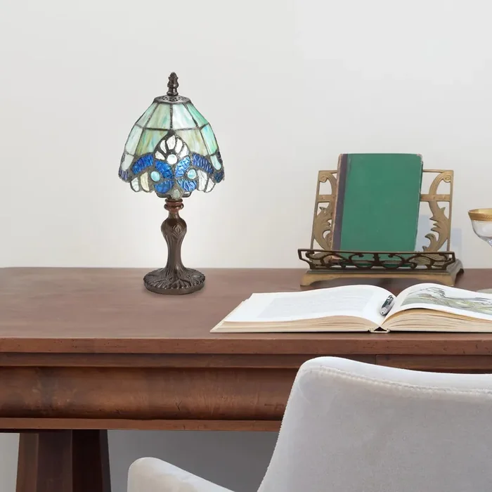 9″H Kiara Blue Butterfly Stained Glass Accent Lamp