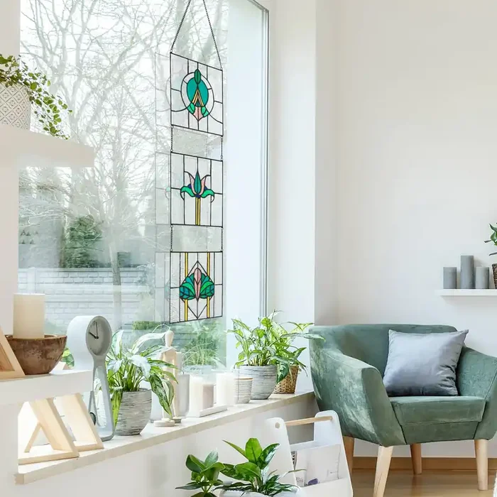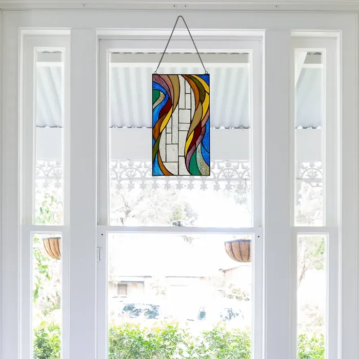 18″H Multicolor Flowing Border Stained Glass Window Panel