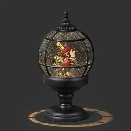 Lighted Swirl Sphere Lantern with Cardinals on Branch