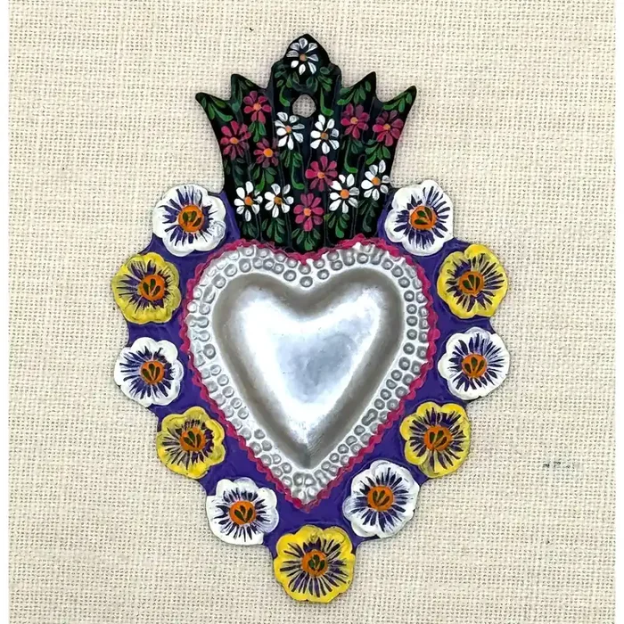 Heart Milagro Aluminum Ornament Hand-Painted in Peru Tin Charm Accessory