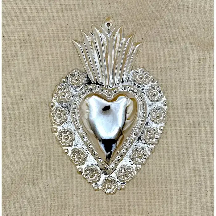 Silver Plate Heart Made in Peru Handmade Milagro Heart-shaped Devotional Charm 13 x 19.5cm