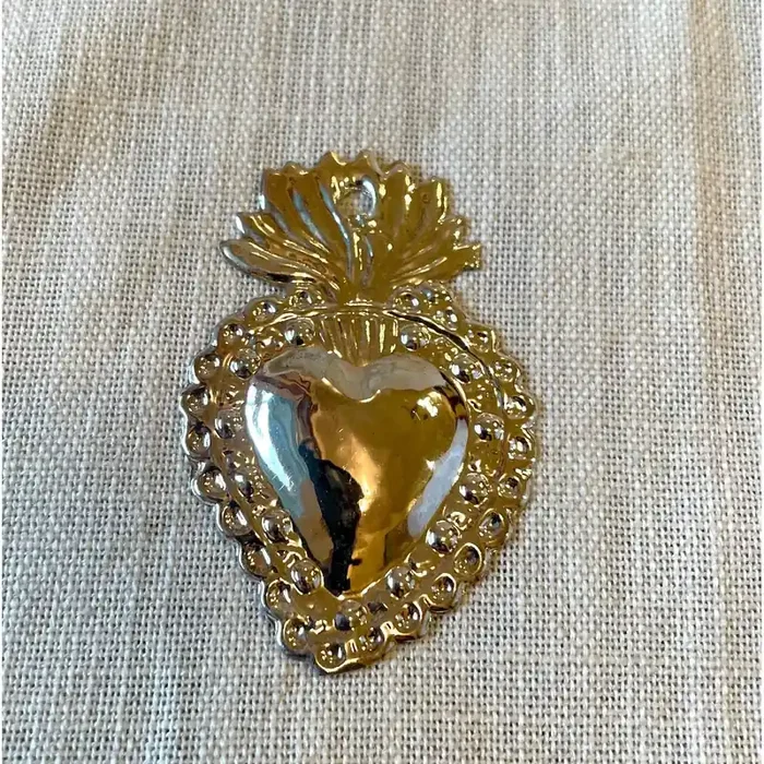 Small Silver Plate Milagro Heart Ornament Handmade in Peru Heart-shaped Devotional Charm