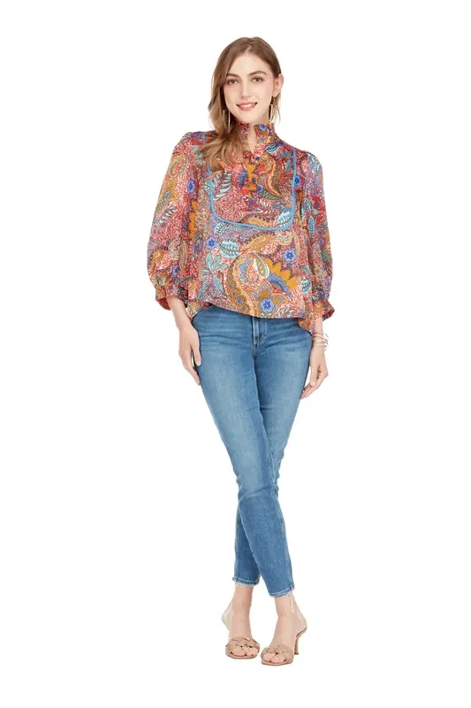 This charming blouse features an abstract floral pattern that will make you stand out. The notch v neck design adds a touch of modesty and elegance. Made from sleek and soft fabric, this top is perfect for comfortable all-day wear.