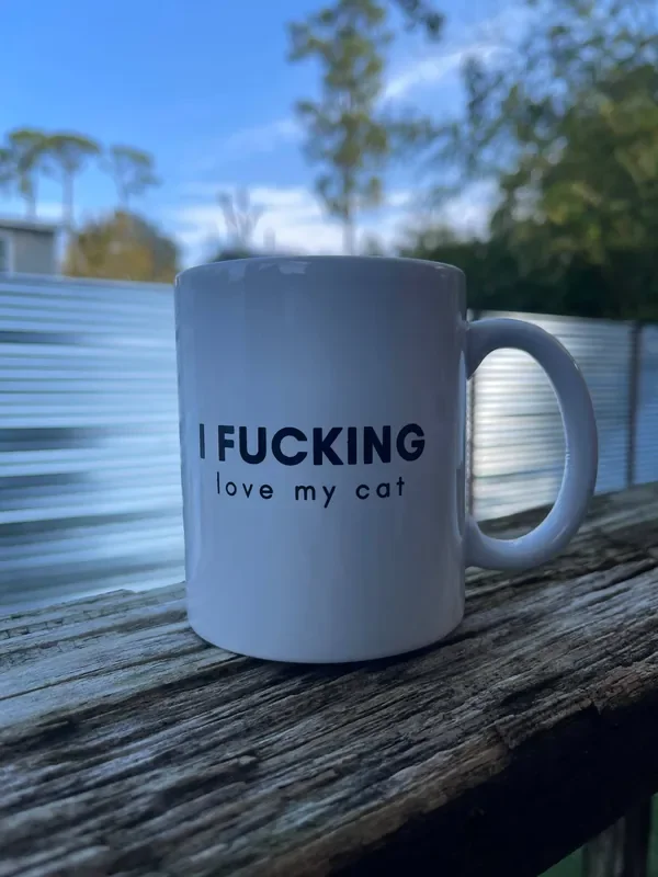 - Oversize (standard size mugs are 11oz), extra tall, heavy mug