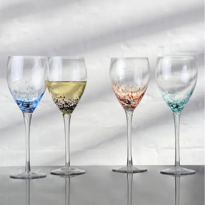 A celebration of colour and form, the Anton Studio Designs Set of 2 Rio Champagne Coupes brings bold energy to the table. Hand-applied diagonal bands swirl around the tall, angled bowl, tapering inward for a modern silhouette with playful sophistication.