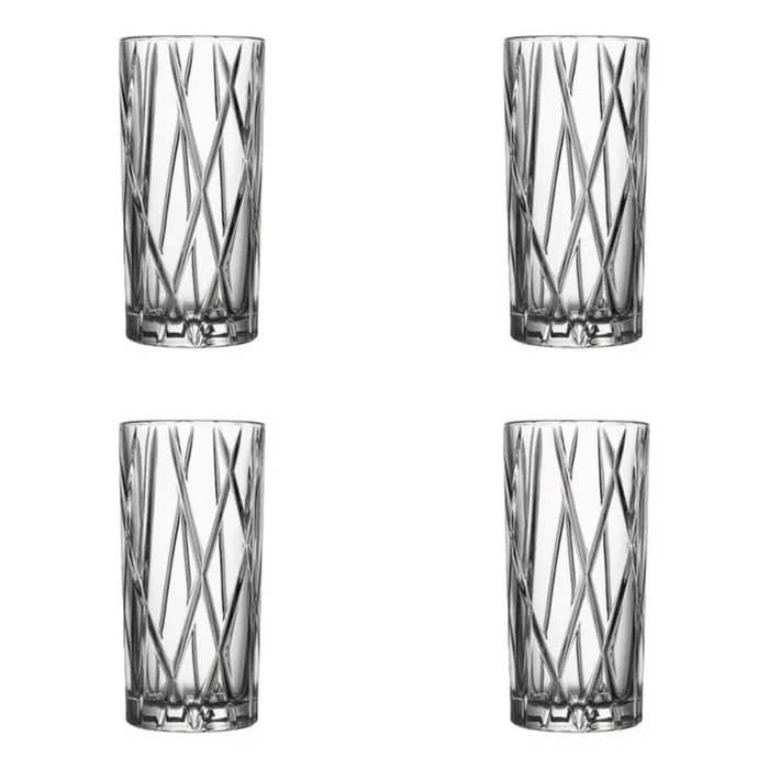 Raise a toast with sophistication. The Set of 4 Croc Highball Glasses with Gold Rim features an 18 oz. highball glass adorned with a stunning textured crocodile pattern and a metallic gold halo rim. This high-fashion set exemplifies stylish elegance. A perfect gift for those with discerning taste. Sold as a set of four.