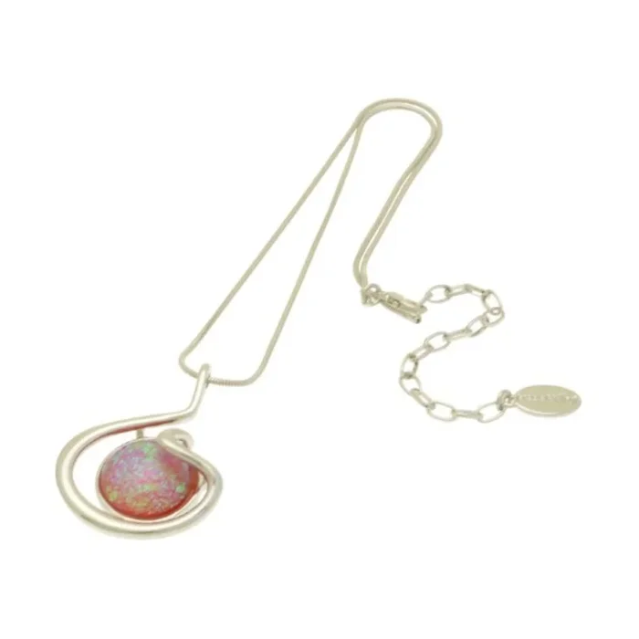 A pair of pretty coral and peach dragonflies flutter on this pendant. Their tails are decorated with crystals creating sparkle. The pendant measures approximately 4cm in diameter and hangs from a 41cm/16″ snake chain with 8cm extender.