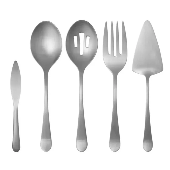 The Gourmet Settings Maddox Satin 20-Piece Flatware Set enhances any table with its clean lines and sleek, matte 18/10 stainless steel finish, offering timeless elegance. Crafted from high-quality stainless steel, this set ensures durability and resistance to corrosion for long-lasting use. Each piece is meticulously weighted and balanced for comfortable handling. This complete set includes all essential dinnerware items perfect for everyday dining. Dishwasher safe.