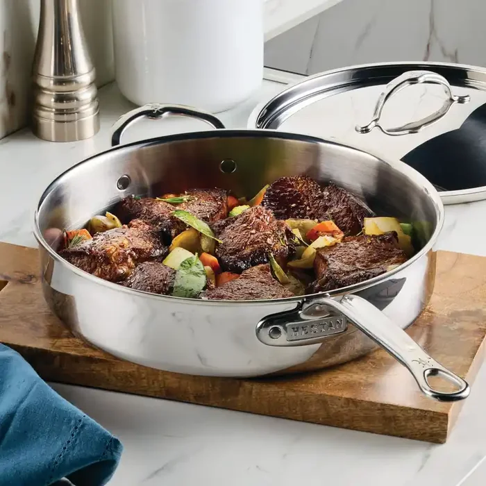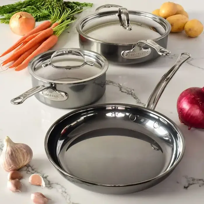 Beautifully balanced and exceptionally responsive, the Hestan ProBond Luxe 2-Piece Stainless Steel Skillet Set with Titum Nonstick is to bring precision and ease to everyday cooking. Featuring 8.5″ and 11″ skillets, this versatile duo is ideal for preparing everything from tender omelets and crepes to toasted nuts and seared vegetables. The tri-ply clad stainless steel body, paired with a ProCore™ aluminum core, delivers quick, even heat, while the TITUM nonstick surface ensures effortless release and durability.