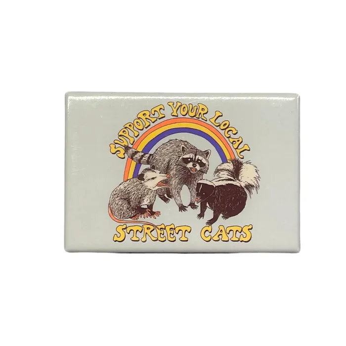 This magnet is made from tin-coated steel wrapped over a plastic backer and an ultra-strong magnetic sheet. The designs in front are wrapped in a glossy, protective mylar.
