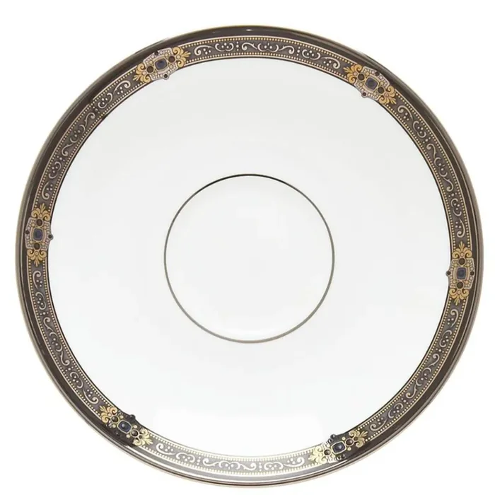 Lenox Federal Gold Bread Plate features elegant bands of glittering 24-karat gold accents, crafted from durable white porcelain. This exquisite bread plate shimmers beautifully under candlelight, evoking a sense of dignity and grace at the dinner table. Dishwasher safe.