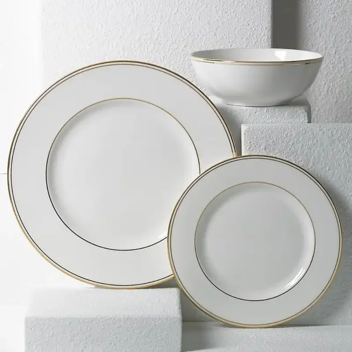 The Lenox Westmore Soup Bowl features a cool, smooth white finish, expertly trimmed with bands of precious platinum. This durable bone china bowl is beautifully contrasted by delicate lace florals and scrolls in a soft sky blue, adding subtle color and texture to your table setting. Dishwasher-safe for added convenience, this elegant soup bowl is perfect for serving soups, stews, or pasta, making every meal a special occasion.