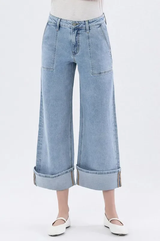 These Lorra high-rise crop wide jeans in ivory are designed to flatter your figure with tummy control and an adjustable waistband for the perfect fit. Their playful style and comfortable cut make them a fun addition to your wardrobe, effortlessly combining comfort and confidence.