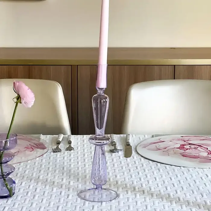 The Mela Artisans Lotus Bloom Tapered Pink Candleholder captures the delicate beauty of blooming petals in a graceful, tiered design. Available in two sizes, it brings a subtle elegance that enhances any candle’s glow.