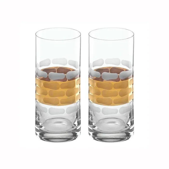 The Nambe Vie Highball Glasses, Set of 4, bring contemporary design to your bar, perfect for cocktail hour. Each glass features a thick, tapered base that fits comfortably in the hand, seamlessly extending to a wider, thin-rimmed body. With a 16 oz. capacity, these glasses are both elegant and functional, ideal for serving highball drinks. Dishwasher safe for easy cleaning.